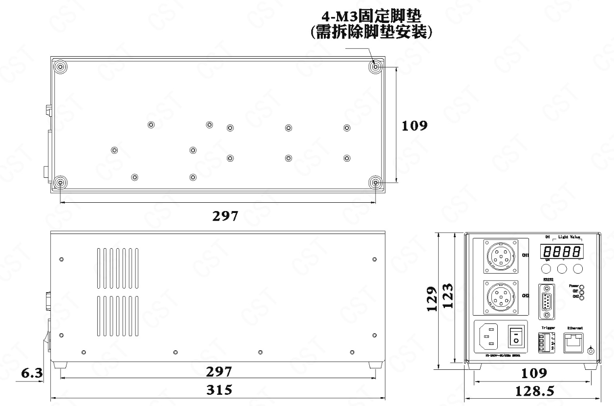 CST 康视达 CST-CPL48760C-2T 大功率恒流控制器 产品型号 CST-CPL48760C-2T 驱动方式 恒流 调光方式 可变电流控制 面板按键 / RS232 / 以太网 输入电压 AC90-240V 50/60Hz 通道数 2 输出电压 DC 48V 最大输出电流 15.8A (单通道最大电流7.9A) 总功率 760W 输出端口 Φ24-6芯航空头 外触发电压 DC5V~24V(电流约5.6mA) 触发延迟 <100us 使用温湿度 温度:0~40℃、湿度:20~85%RH(非凝结) 保存温湿度 温度:-20~60℃、湿度:20~85%RH(非凝结) 冷却方式 强制冷却 冷却方式 5000g或以下 外形尺寸 128.5×315×129mm 手机/微信:13682357734 电话:0755-84690029 QQ:2844337877 邮箱:2844337877@qq.com...