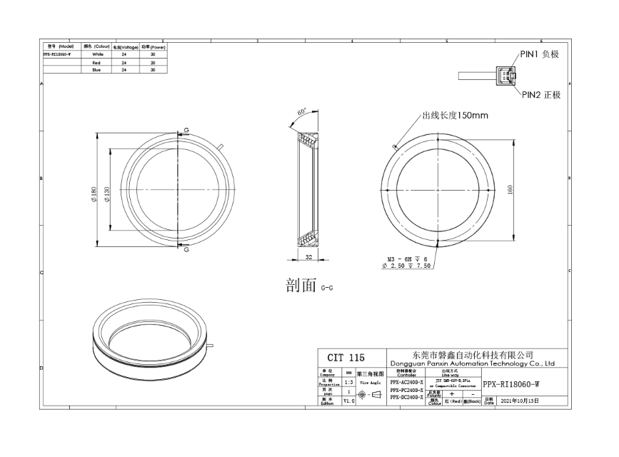 PPX 磐鑫 PPX-RI18060 环形光源 应用范围 通用外观检测/物体有无识别/PCB基板检测/字符识别/显微镜照明/塑胶容器检测 产品特点 不同角度设计360°环形照射无死角,突出产品三维信息。 高密度LED排列亮度高,照射均匀。 选配漫反射板,光线柔和均匀性更强。 光源电源线采用定制设计的出线卡扣提高光源抗拉扯,耐摇摆性能10倍以上。 技术指标 手机/微信:13682357734 电话:0755-84690029 QQ: 2844337877 邮箱:2844337877@qq.com...