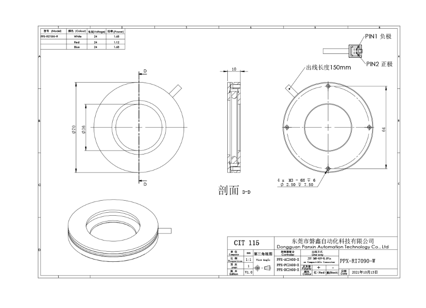 PPX 磐鑫 PPX-RI7090 环形光源 应用范围 通用外观检测/物体有无识别/PCB基板检测/字符识别/显微镜照明/塑胶容器检测 产品特点 不同角度设计360°环形照射无死角,突出产品三维信息。 高密度LED排列亮度高,照射均匀。 选配漫反射板,光线柔和均匀性更强。 光源电源线采用定制设计的出线卡扣提高光源抗拉扯,耐摇摆性能10倍以上。 技术指标 手机/微信:13682357734 电话:0755-84690029 QQ: 2844337877 邮箱:2844337877@qq.com...