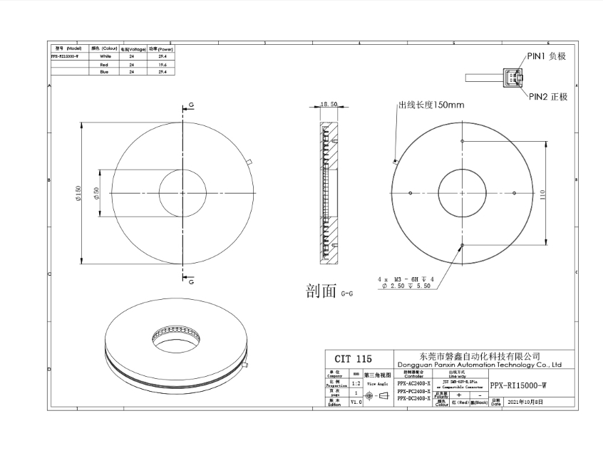 PPX 磐鑫 PPX-RI15000 环形光源 应用范围 通用外观检测/物体有无识别/PCB基板检测/字符识别/显微镜照明/塑胶容器检测 产品特点 不同角度设计360°环形照射无死角,突出产品三维信息。 高密度LED排列亮度高,照射均匀。 选配漫反射板,光线柔和均匀性更强。 光源电源线采用定制设计的出线卡扣提高光源抗拉扯,耐摇摆性能10倍以上。 技术指标 手机/微信:13682357734 电话:0755-84690029 QQ: 2844337877 邮箱:2844337877@qq.com...
