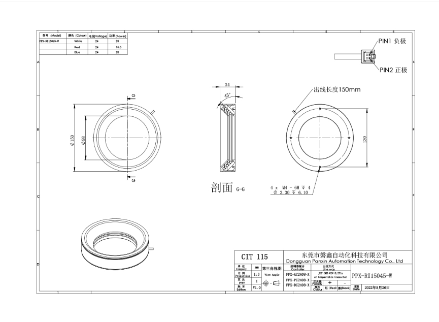 PPX 磐鑫 PPX-RI15045 环形光源 应用范围 通用外观检测/物体有无识别/PCB基板检测/字符识别/显微镜照明/塑胶容器检测 产品特点 不同角度设计360°环形照射无死角,突出产品三维信息。 高密度LED排列亮度高,照射均匀。 选配漫反射板,光线柔和均匀性更强。 光源电源线采用定制设计的出线卡扣提高光源抗拉扯,耐摇摆性能10倍以上。 技术指标 手机/微信:13682357734 电话:0755-84690029 QQ: 2844337877 邮箱:2844337877@qq.com...