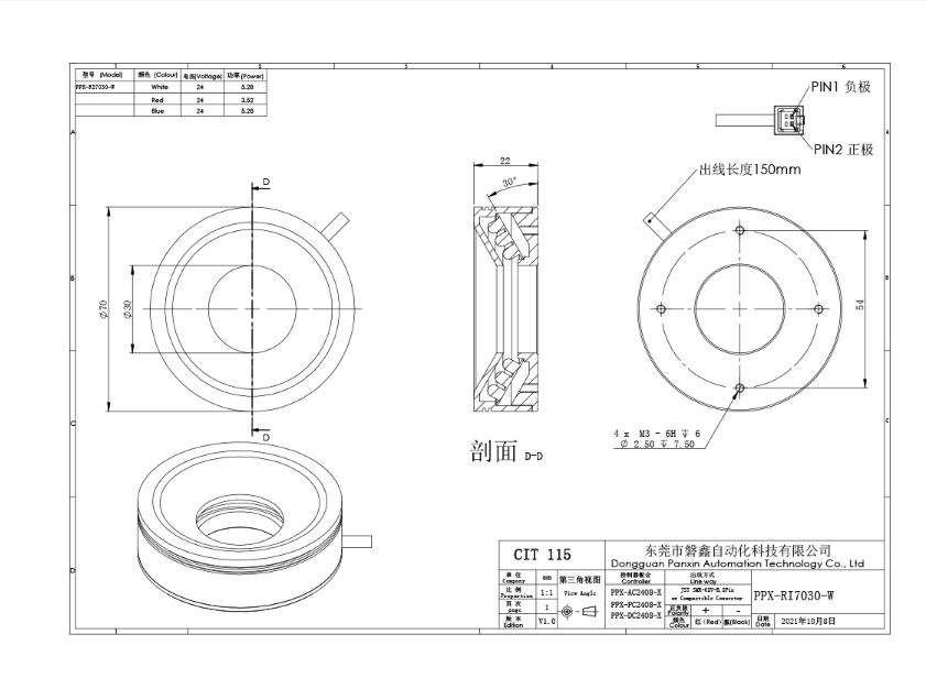 PPX 磐鑫 PPX-RI7030 环形光源 应用范围 通用外观检测/物体有无识别/PCB基板检测/字符识别/显微镜照明/塑胶容器检测 产品特点 不同角度设计360°环形照射无死角,突出产品三维信息。 高密度LED排列亮度高,照射均匀。 选配漫反射板,光线柔和均匀性更强。 光源电源线采用定制设计的出线卡扣提高光源抗拉扯,耐摇摆性能10倍以上。 技术指标 手机/微信:13682357734 电话:0755-84690029 QQ: 2844337877 邮箱:2844337877@qq.com...