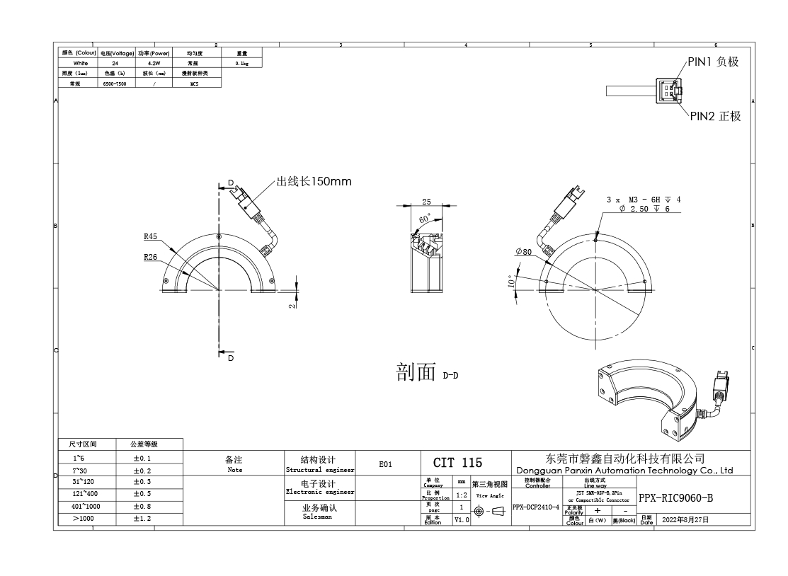 PPX 磐鑫 PPX-RIC9060-W 半圆形光源 应用范围 椭圆形边缘成像/有无筛选/MARK点定位/安装空间有限的场合/表面划伤 缺陷检测 产品特点 与条形光源组合应用形成椭圆形打光方式 特别针对弧形产品设计 具有非常均匀的成像效果 高密度LED排列 亮度高 照射均匀 选配漫反射板 光线柔和 均匀性更强 光源电源线采用定制设计的出线卡扣 提高光源抗拉扯 耐摇摆性能10倍以上 技术指标 手机/微信:13682357734 电话:0755-84690029 QQ: 2844337877 邮箱:2844337877@qq.com...