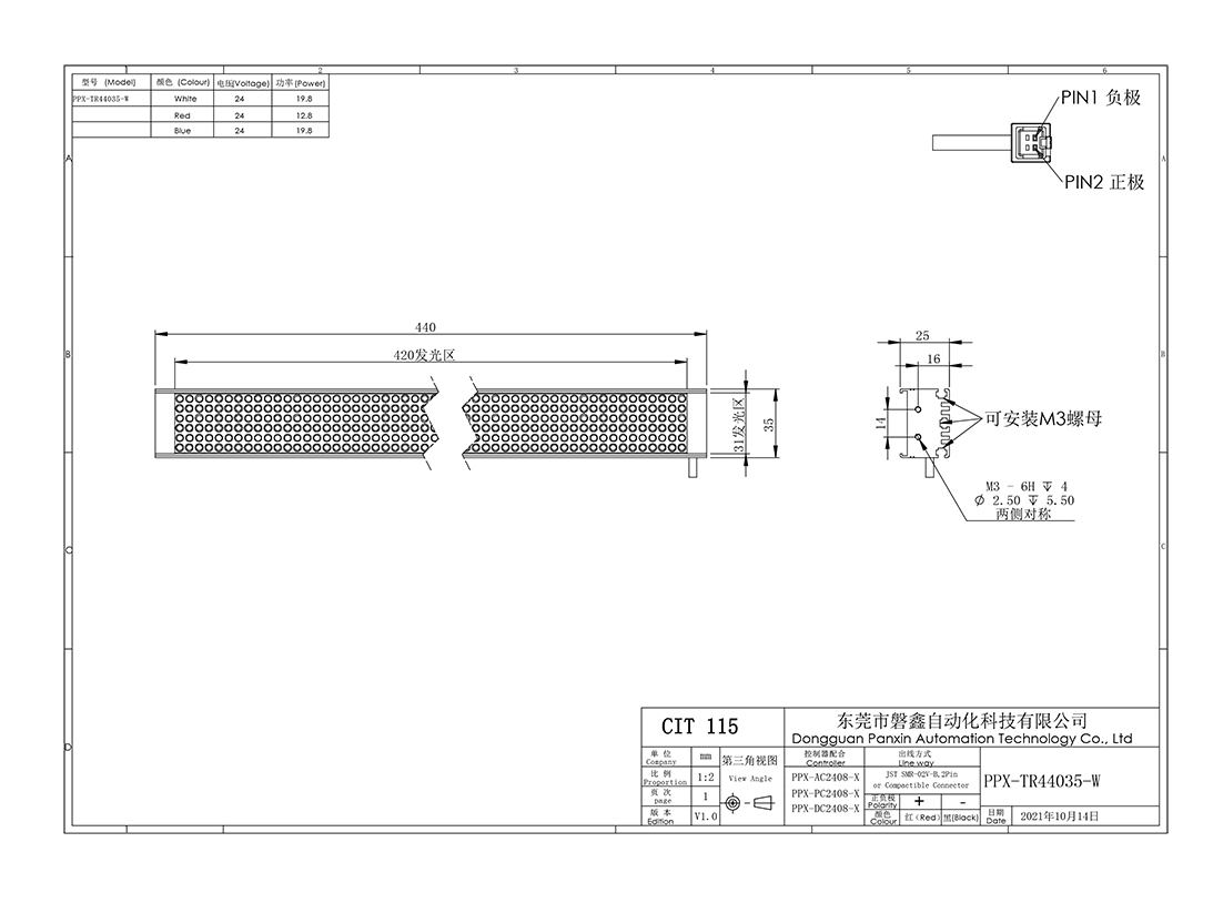 PPX 磐鑫 PPX-TR44035 条形光源 应用范围 较大物体表面检测/图像扫描/二维码识别/条形边缺陷检测 产品特点 产品尺寸跨度大发光长度从几十毫米到几千毫米均可制作大面积打光首选 高密度LED排列亮度高照射均匀 选配漫反射板,光线柔和均匀性更强 光源电源线采用定制设计的出线卡扣提高光源抗拉扯,耐摇摆性能10倍以上 照射角度自由灵活安装方式灵活 技术指标 手机/微信:13682357734 电话:0755-84690029 QQ: 2844337877 邮箱:2844337877@qq.com...