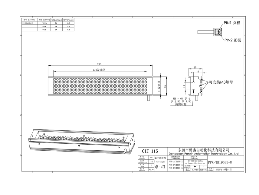 PPX 磐鑫 PPX-TR19535 条形光源 应用范围 较大物体表面检测/图像扫描/二维码识别/条形边缺陷检测 产品特点 产品尺寸跨度大发光长度从几十毫米到几千毫米均可制作大面积打光首选 高密度LED排列亮度高照射均匀 选配漫反射板,光线柔和均匀性更强 光源电源线采用定制设计的出线卡扣提高光源抗拉扯,耐摇摆性能10倍以上 照射角度自由灵活安装方式灵活 01. 技术指标 手机/微信:13682357734 电话:0755-84690029 QQ: 2844337877 邮箱:2844337877@qq.com...