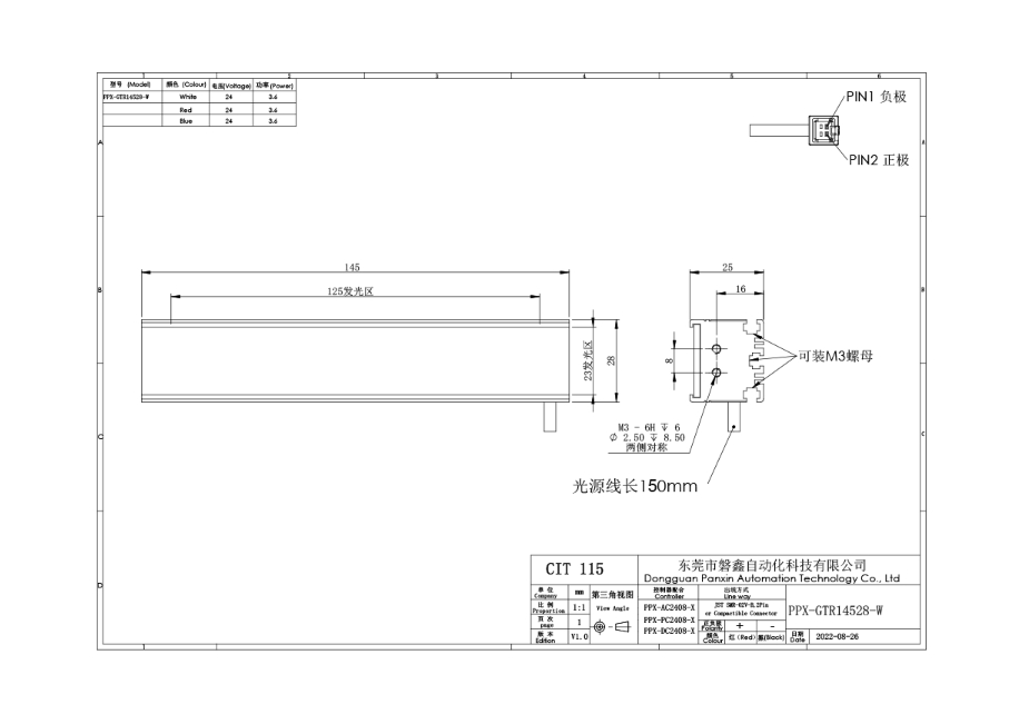PPX 磐鑫 PPX-GTR14528-W 高均匀条形光源 应用范围 反光面外观检测/可做长条形背光使用/大面积轮廓定位检测/覆膜包装检测定位 产品特点 最长可做2000mm 模块化设计 定制时间短 高均匀长条形设计 可做背光使用 高密度贴片LED排列 亮度高 照射均匀 两侧及底部做凸型槽设计 安装灵活 适宜多种场合 光源电源线采用定制设计的出线卡扣 提高光源抗拉扯耐摇摆性能10倍以上 01. 技术指标 手机/微信:13682357734 电话:0755-84690029 QQ: 2844337877 邮箱:2844337877@qq.com...
