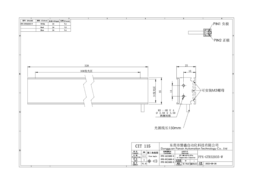 PPX 磐鑫 PPX-GTR32035-W 高均匀条形光源 应用范围 反光面外观检测/可做长条形背光使用/大面积轮廓定位检测/覆膜包装检测定位 产品特点 最长可做2000mm 模块化设计 定制时间短 高均匀长条形设计 可做背光使用 高密度贴片LED排列 亮度高 照射均匀 两侧及底部做凸型槽设计 安装灵活 适宜多种场合 光源电源线采用定制设计的出线卡扣 提高光源抗拉扯耐摇摆性能10倍以上 01. 技术指标 手机/微信:13682357734 电话:0755-84690029 QQ: 2844337877 邮箱:2844337877@qq.com...