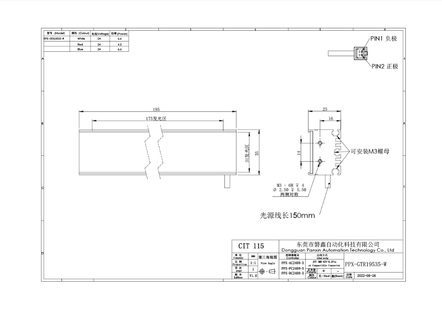 PPX 磐鑫 PPX-GTR19535-W 高均匀条形光源 应用范围 反光面外观检测/可做长条形背光使用/大面积轮廓定位检测/覆膜包装检测定位 产品特点 最长可做2000mm 模块化设计 定制时间短 高均匀长条形设计 可做背光使用 高密度贴片LED排列 亮度高 照射均匀 两侧及底部做凸型槽设计 安装灵活 适宜多种场合 光源电源线采用定制设计的出线卡扣 提高光源抗拉扯耐摇摆性能10倍以上 01. 技术指标 手机/微信:13682357734 电话:0755-84690029 QQ: 2844337877 邮箱:2844337877@qq.com...