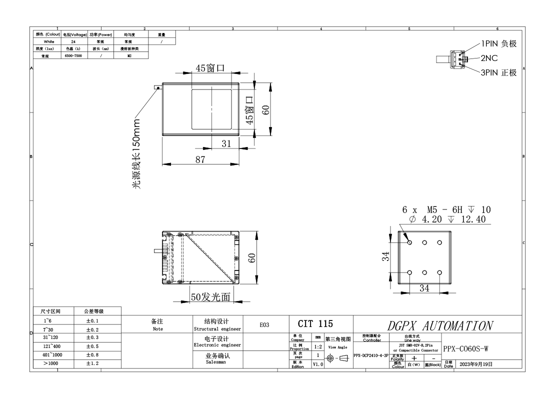 PPX 磐鑫 PPX-CO60S 同轴光源 应用范围 反光表面检测/有无筛选/MARK点定位/液晶显示屏定位检测/表面划伤,缺陷检测 产品特点 采用国际一流镀膜分光镜 成像品质高 无重影 采用同轴光源专用散热部件 保证光源散热效率 最大限度延长使用周期 高密度LED排列 亮度高 照射均匀 选配漫反射板 光线柔和 均匀性更强 光源电源线采用定制设计的出线卡扣 提高光源抗拉扯 耐摇摆性能10倍以上 01. 技术指标 手机/微信:13682357734 电话:0755-84690029 QQ: 2844337877 邮箱:2844337877@qq.com...