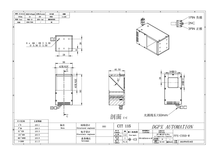 PPX 磐鑫 PPX-CO60 同轴光源 应用范围 反光表面检测/有无筛选/MARK点定位/液晶显示屏定位检测/表面划伤,缺陷检测 产品特点 采用国际一流镀膜分光镜 成像品质高 无重影 采用同轴光源专用散热部件 保证光源散热效率 最大限度延长使用周期 高密度LED排列 亮度高 照射均匀 选配漫反射板 光线柔和 均匀性更强 光源电源线采用定制设计的出线卡扣 提高光源抗拉扯 耐摇摆性能10倍以上 01. 技术指标 手机/微信:13682357734 电话:0755-84690029 QQ: 2844337877 邮箱:2844337877@qq.com...