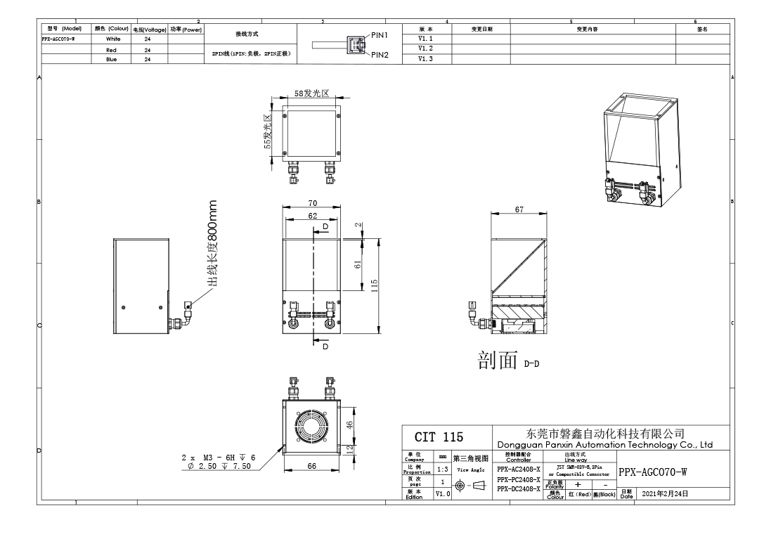 PPX 磐鑫 PPX-AGCO70 转角同轴光源 应用范围 二维码识别/条码识别/反光物体表面缺陷检测/物体边缘定位 产品特点 特殊场合改变相机方向,节省安装空间 可定制不同尺寸和波段 铝属性外壳,散热好 光源电源线采用定制设计的出线卡扣提高光源抗拉扯 耐摇摆性能10倍以上 技术指标 手机/微信:13682357734 电话:0755-84690029 QQ: 2844337877 邮箱:2844337877@qq.com...