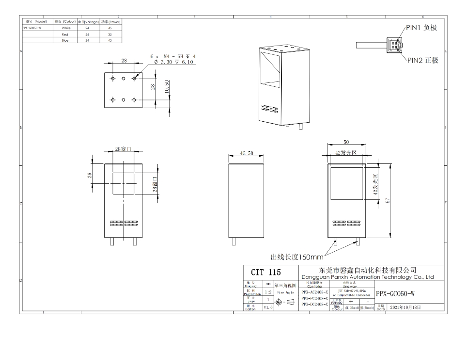 PPX 磐鑫 PPX-GCO50-W 高亮同轴光源 应用范围 反光表面检测/有无筛选/MARK点定位/液晶显示屏定位检测/表面划伤,缺陷检测/飞拍 产品特点 由条光组合而成 光源照射角度可以自由调节 可单独控制亮度 大面积表面 轮廓打光首选 高密度LED排列 亮度高 照射均匀 选配漫反射板 光线柔和 均匀性更强 光源电源线采用定制设计的出线卡扣 提高光源抗拉扯 耐摇摆性能10倍以上 01. 技术指标 手机/微信:13682357734 电话:0755-84690029 QQ: 2844337877 邮箱:2844337877@qq.com...