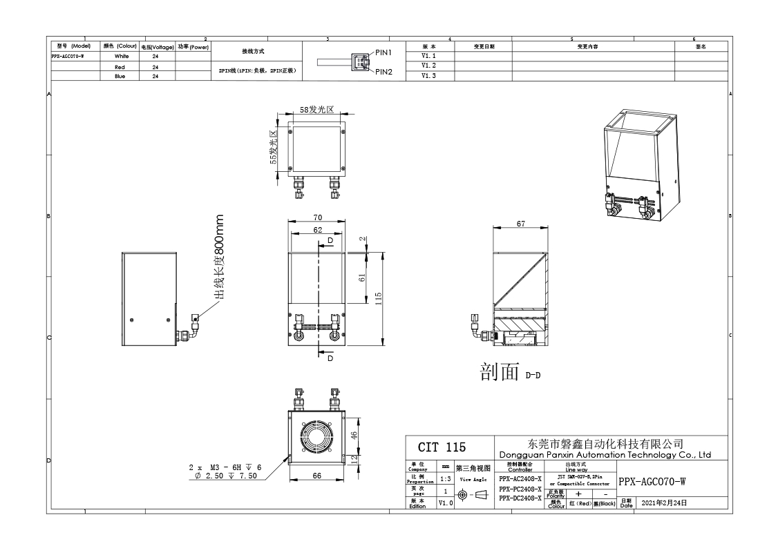 PPX 磐鑫 PPX-ACO70 转角同轴光源 应用范围 二维码识别/条码识别/反光物体表面缺陷检测/物体边缘定位 产品特点 特殊场合改变相机方向,节省安装空间 可定制不同尺寸和波段 铝属性外壳,散热好 光源电源线采用定制设计的出线卡扣提高光源抗拉扯 耐摇摆性能10倍以上 技术指标 手机/微信:13682357734 电话:0755-84690029 QQ: 2844337877 邮箱:2844337877@qq.com...