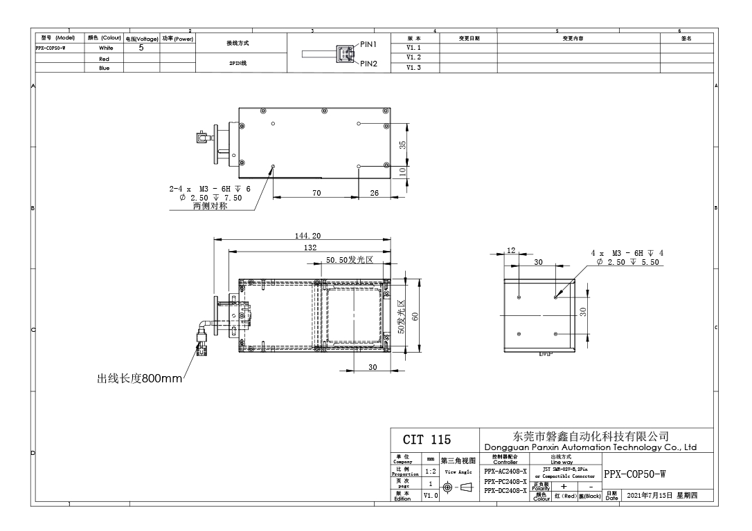 PPX 磐鑫 PPX-COP50 同轴平行光源 应用范围 尺寸测量/玻璃检测/镜面划痕检测 产品特点 采用特殊透镜产生平行光 可定制不同尺寸和波段 选配漫反射板 光线柔和均匀性更强 光源电源线采用定制设计的出线卡扣提高光源抗拉扯 耐摇摆性能10倍以上 技术指标 手机/微信:13682357734 电话:0755-84690029 QQ: 2844337877 邮箱:2844337877@qq.com...