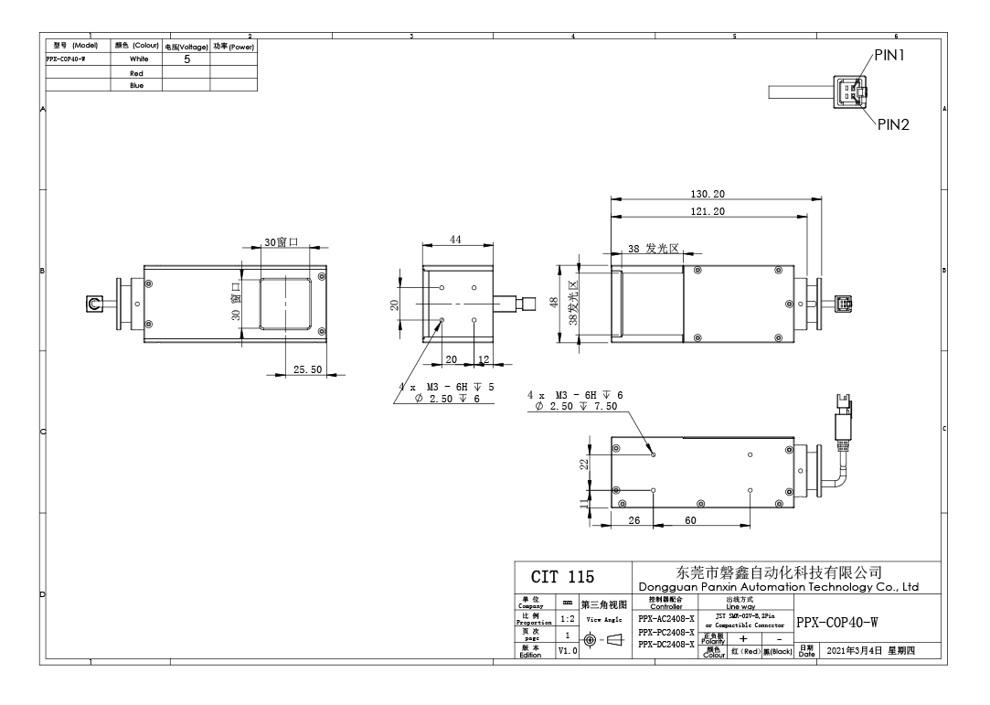 PPX 磐鑫 PPX-COP40 同轴平行光源 应用范围 尺寸测量/玻璃检测/镜面划痕检测 产品特点 采用特殊透镜产生平行光 可定制不同尺寸和波段 选配漫反射板 光线柔和均匀性更强 光源电源线采用定制设计的出线卡扣提高光源抗拉扯 耐摇摆性能10倍以上 技术指标 手机/微信:13682357734 电话:0755-84690029 QQ: 2844337877 邮箱:2844337877@qq.com...