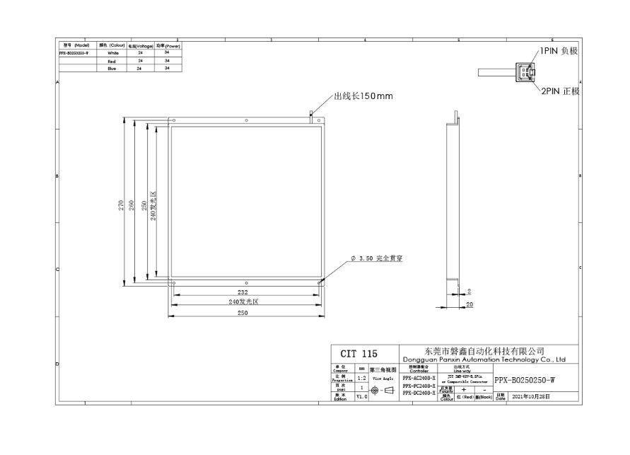 PPX 磐鑫 PPX-BO250250 底部背光源 应用范围 五金 塑胶零件尺寸测量/有无筛选/透明膜 污点破损检测/液晶屏定位测量 产品特点 采用贴片灯珠高密度均匀排列 均匀发光 底部满布灯珠 亮度高 采用进口漫射板 保证最高发光均匀度 光源电源线采用定制设计的出线卡扣 提高光源抗拉扯 耐摇摆性能10倍以上 技术指标 手机/微信:13682357734 电话:0755-84690029 QQ: 2844337877 邮箱:2844337877@qq.com...