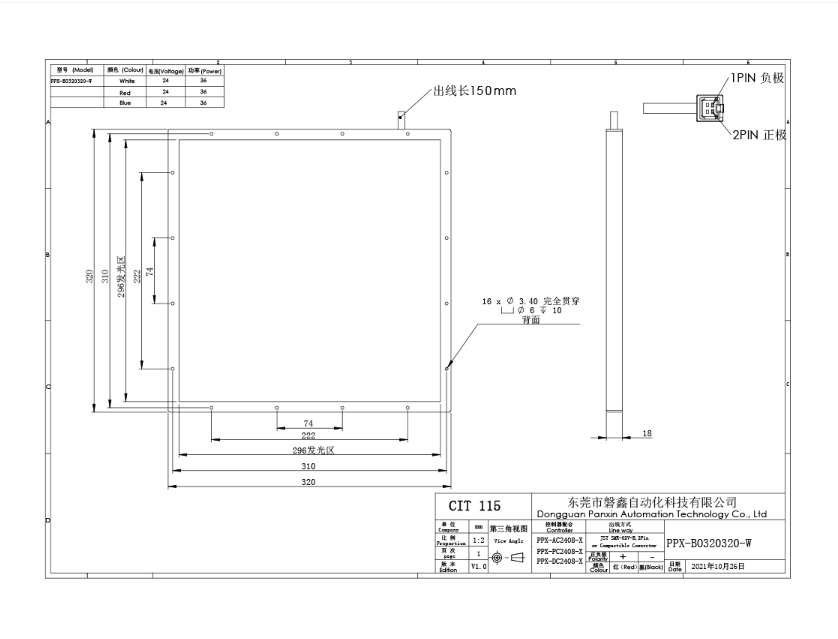 PPX 磐鑫 PPX-BO320320 底部背光源 应用范围 五金 塑胶零件尺寸测量/有无筛选/透明膜 污点破损检测/液晶屏定位测量 产品特点 采用贴片灯珠高密度均匀排列 均匀发光 底部满布灯珠 亮度高 采用进口漫射板 保证最高发光均匀度 光源电源线采用定制设计的出线卡扣 提高光源抗拉扯 耐摇摆性能10倍以上 技术指标 手机/微信:13682357734 电话:0755-84690029 QQ: 2844337877 邮箱:2844337877@qq.com...