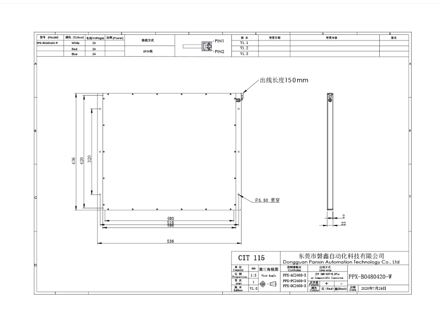 PPX 磐鑫 PPX-BO480420 底部背光源