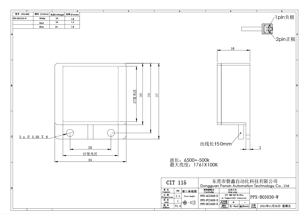 PPX 磐鑫 PPX-BO3030 底部背光源 应用范围 五金 塑胶零件尺寸测量/有无筛选/透明膜 污点破损检测/液晶屏定位测量 产品特点 采用贴片灯珠高密度均匀排列 均匀发光 底部满布灯珠 亮度高 采用进口漫射板 保证最高发光均匀度 光源电源线采用定制设计的出线卡扣 提高光源抗拉扯 耐摇摆性能10倍以上 技术指标 手机/微信:13682357734 电话:0755-84690029 QQ: 2844337877 邮箱:2844337877@qq.com...