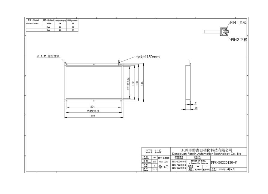 PPX 磐鑫 PPX-BO220130 底部背光源 应用范围 五金 塑胶零件尺寸测量/有无筛选/透明膜 污点破损检测/液晶屏定位测量 产品特点 采用贴片灯珠高密度均匀排列 均匀发光 底部满布灯珠 亮度高 采用进口漫射板 保证最高发光均匀度 光源电源线采用定制设计的出线卡扣 提高光源抗拉扯 耐摇摆性能10倍以上 技术指标 手机/微信:13682357734 电话:0755-84690029 QQ: 2844337877 邮箱:2844337877@qq.com...