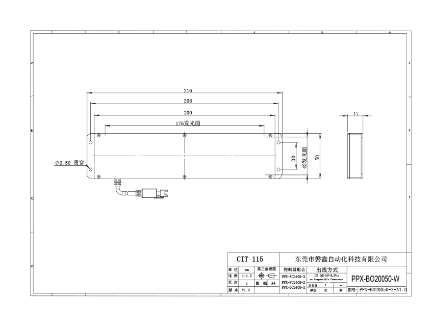 光源电源线采用定制设计的出线卡扣 提高光源抗拉扯 耐摇摆性能10倍以上