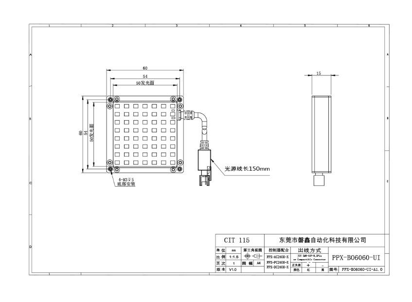 PPX 磐鑫 PPX-BO6060 底部背光源 应用范围 五金 塑胶零件尺寸测量/有无筛选/透明膜 污点破损检测/液晶屏定位测量 产品特点 采用贴片灯珠高密度均匀排列 均匀发光 底部满布灯珠 亮度高 采用进口漫射板 保证最高发光均匀度 光源电源线采用定制设计的出线卡扣 提高光源抗拉扯 耐摇摆性能10倍以上 技术指标 手机/微信:13682357734 电话:0755-84690029 QQ: 2844337877 邮箱:2844337877@qq.com...