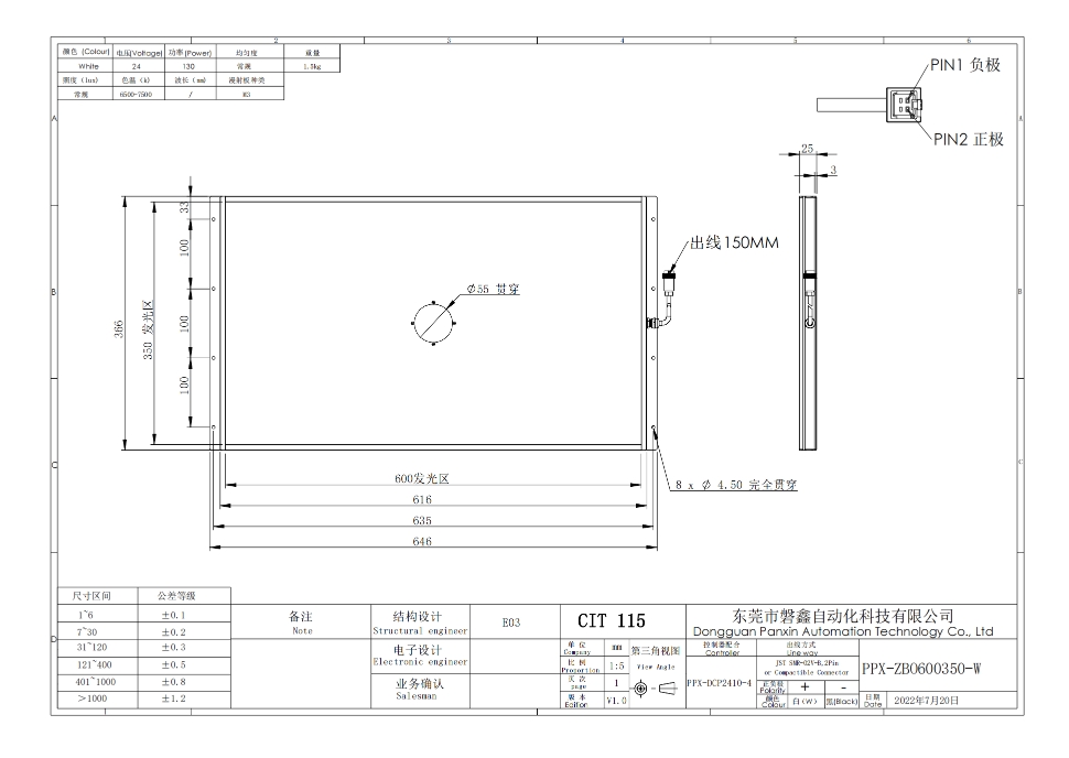 PPX 磐鑫 PPX-ZBO600350-W 中孔背光源