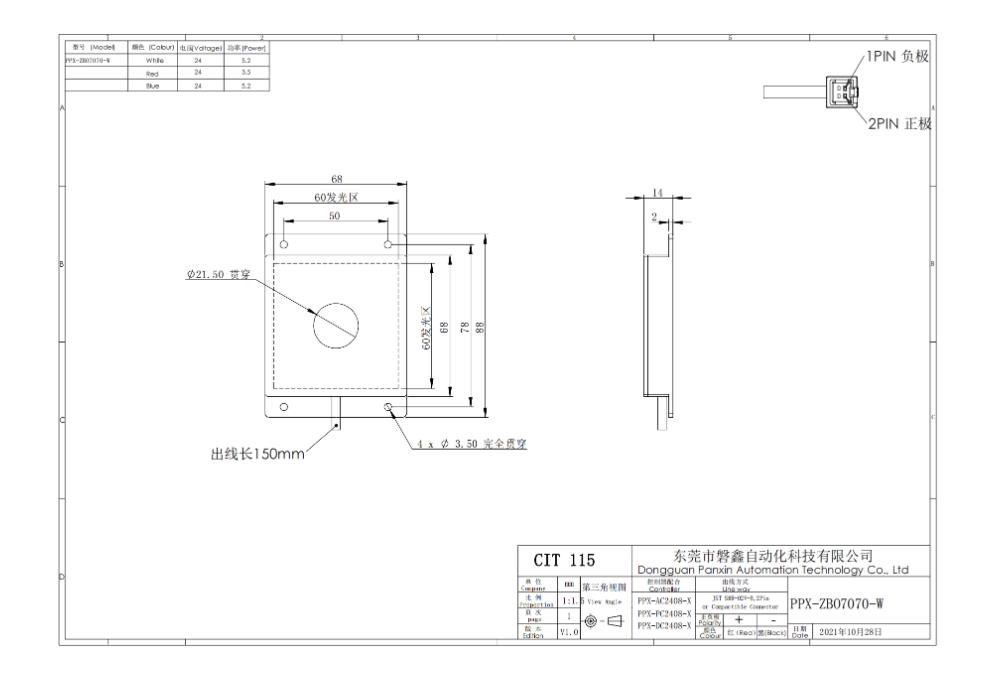 PPX 磐鑫 PPX-ZBO7070-W 中孔背光源 应用范围 反光表面检测/有无筛选/MARK点定位/液晶显示屏定位检测/表面划伤 缺陷检测 产品特点 大面积表面打光首选 可定制开孔的数量 大小 位置 满足多种需求 高密度LED排列 亮度高 照射均匀 选配漫反射板 光线柔和 均匀性更强 光源电源线采用定制设计的出线卡扣 提高光源抗拉扯 耐摇摆性能10倍以上 技术指标 手机/微信:13682357734 电话:0755-84690029 QQ: 2844337877 邮箱:2844337877@qq.com...