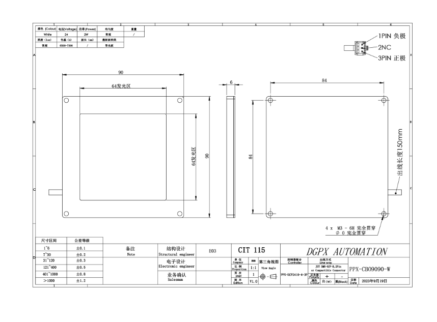 PPX 磐鑫 PPX-CBO9090-W 侧部背光源 应用范围 大面积产品检测与测量/大面积产品轮廓定位/显示屏坏点检测 产品特点 采用特殊漫射板 四面进光 均匀度可达95%以上 可实现最薄6mm的超薄设计 节省较大安装空间 亮度相对底部背光源稍低 对亮度要求高的客户谨慎选用 尺寸定制性强 大面积均匀照明首选 光源电源线采用定制设计的出线卡扣 光源抗拉扯 耐摇摆性能提高10倍以上 技术指标 手机/微信:13682357734 电话:0755-84690029 QQ: 2844337877 邮箱:2844337877@qq.com...