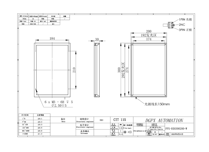 PPX 磐鑫 PPX-RIH300200 方形无影光源 应用范围 反光物体表面检测/方形轮廓定位/MARK点定位/二维码条形码读取识别/表面划伤 缺陷检测 产品特点 可以在一定范围内形成方形的高均匀光线 特制漫反射板 光线均匀柔和 实现了无影效果 高密度LED排列 亮度高 照射均匀 光源电源线采用定制设计的出线卡扣 提高光源抗拉扯 耐摇摆性能10倍以上 技术指标 手机/微信:13682357734 电话:0755-84690029 QQ: 2844337877 邮箱:2844337877@qq.com...