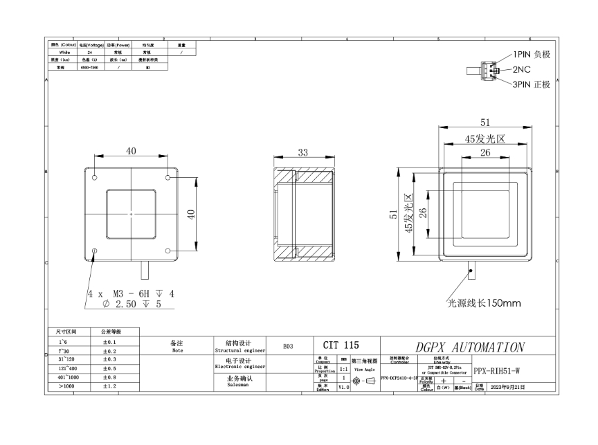 PPX 磐鑫 PPX-RIH51 方形无影光源 应用范围 反光物体表面检测/方形轮廓定位/MARK点定位/二维码条形码读取识别/表面划伤 缺陷检测 产品特点 可以在一定范围内形成方形的高均匀光线 特制漫反射板 光线均匀柔和 实现了无影效果 高密度LED排列 亮度高 照射均匀 光源电源线采用定制设计的出线卡扣 提高光源抗拉扯 耐摇摆性能10倍以上 技术指标 手机/微信:13682357734 电话:0755-84690029 QQ: 2844337877 邮箱:2844337877@qq.com...