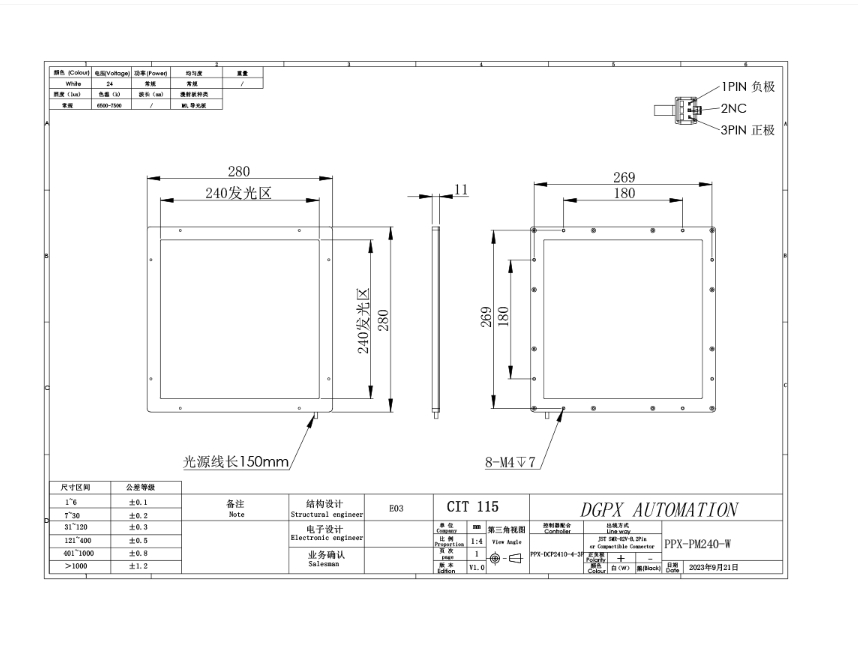 PPX 磐鑫 PPX-PM240-W 平面无影光源 应用范围 食品、烟草、日化用品包装检测电器外壳、零件检测与测量高反光、不平整表面字符、图形检测、测量与识别 产品特点 散射发光 均匀性好 轻巧 紧凑 便于安装 节省空间 同轴面状光源 具备无影光和同轴光效果 技术指标 手机/微信:13682357734 电话:0755-84690029 QQ: 2844337877 邮箱:2844337877@qq.com...