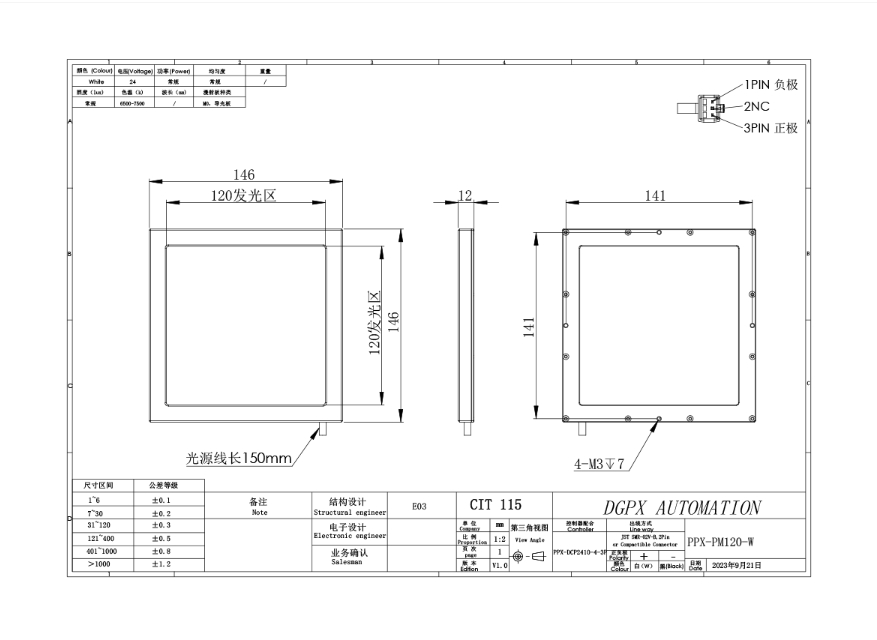 PPX 磐鑫 PPX-PM120-W 平面无影光源 应用范围 食品、烟草、日化用品包装检测电器外壳、零件检测与测量高反光、不平整表面字符、图形检测、测量与识别 产品特点 散射发光 均匀性好 轻巧 紧凑 便于安装 节省空间 同轴面状光源 具备无影光和同轴光效果 技术指标 手机/微信:13682357734 电话:0755-84690029 QQ: 2844337877 邮箱:2844337877@qq.com...