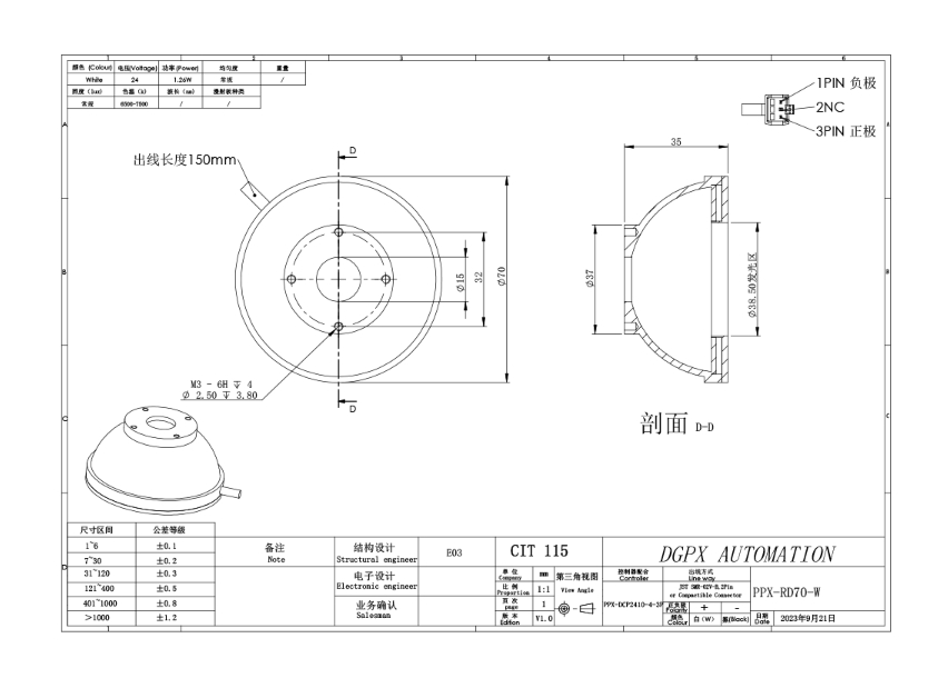 PPX 磐鑫 PPX-RD70 圆顶光源 应用范围 反光表面检测/凹凸面、曲面、弧形表面检测/饮料瓶底字符检测/玻璃片定位/表面划伤,缺陷检测 产品特点 特殊球面设计 使光线更加均匀的分布在产品上 高密度LED排列 亮度高 照射均匀 光源内部喷涂特制纳米反光涂料 光线均匀柔和 可定制超高亮圆顶光源 有效解决光强不足问题 与同轴光源搭配使用 可有效解决圆顶光源中间阴影问题 光源电源线采用定制设计的出线卡扣 提高光源抗拉扯 耐摇摆性能10倍以上 01. 技术指标 手机/微信:13682357734 电话:0755-84690029 QQ: 2844337877 邮箱:2844337877@qq.com...