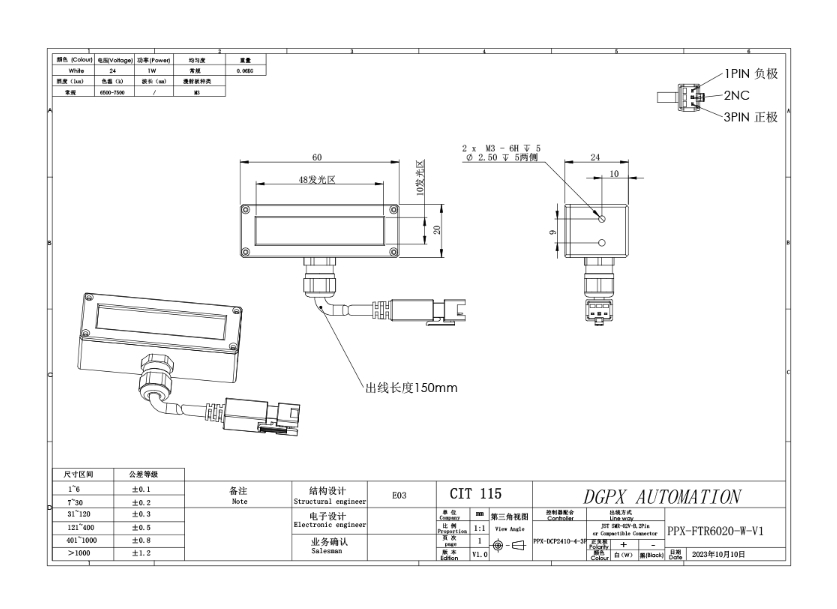PPX 磐鑫 PPX-FTR6020 防水光源 应用范围 CNC铣床定位/油污 多尘环境/浅水层打光应用/室外应用 产品特点 PPX系列防水光源可达防水IP67标准 特殊机械结构设计 保证光源稳定 特别加大的散热片设计 保证在密封 多尘 油污环境下能呈现良好的工作状态 出线口采用定制金属防水接头 防水性能高 耐拉扯 01. 技术指标 手机/微信:13682357734 电话:0755-84690029 QQ: 2844337877 邮箱:2844337877@qq.com...