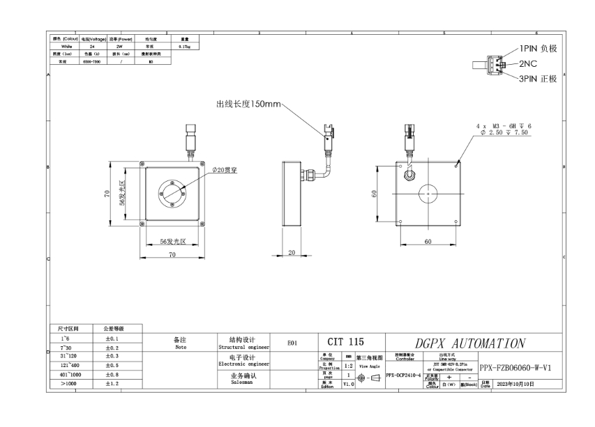 PPX 磐鑫 PPX-FZBO6060 防水光源 应用范围 CNC铣床定位/油污 多尘环境/浅水层打光应用/室外应用 产品特点 PPX系列防水光源可达防水IP67标准 特殊机械结构设计 保证光源稳定 特别加大的散热片设计 保证在密封 多尘 油污环境下能呈现良好的工作状态 出线口采用定制金属防水接头 防水性能高 耐拉扯 01. 技术指标 手机/微信:13682357734 电话:0755-84690029 QQ: 2844337877 邮箱:2844337877@qq.com...