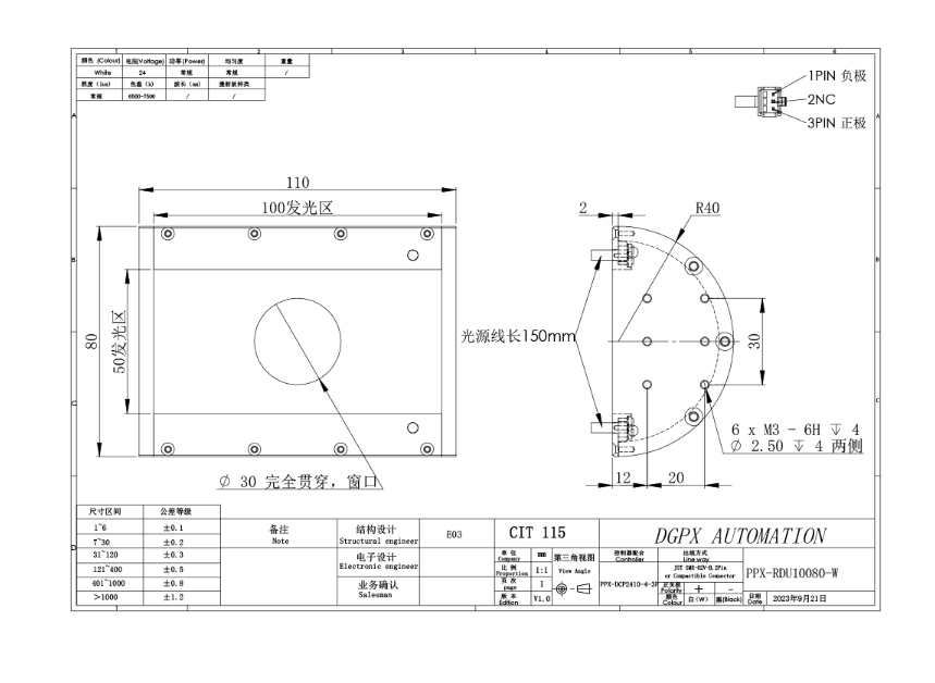 PPX 磐鑫 PPX-RDU10080 隧道光光源 应用范围 烟包表面检测/电子产品外壳污点杂质检测/PCB铜箔检测/大幅面表面缺陷检测 产品特点 采用高效的散热设计,充分保证产品亮度和使用寿命 漫射效果好,有效消除表面不平整形成的干扰 可选择中间开孔或者开槽以配合面阵相机和线阵相机 光源电源线采用定制设计的出线卡扣提高光源抗拉扯耐摇摆性能10倍以上 01. 技术指标 手机/微信:13682357734 电话:0755-84690029 QQ: 2844337877 邮箱:2844337877@qq.com...