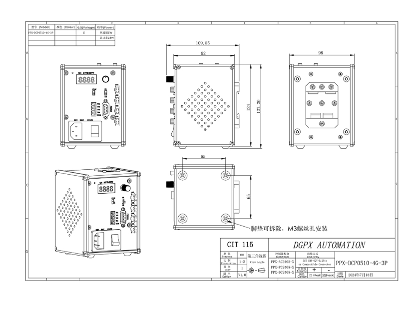 PPX 磐鑫 PPX-DCP0510-4G 光源控制器 应用范围 精准控制光源亮度 产品特点 RS232 串口通讯,通过上位机软件远程对 LED 光源进行亮度调节 4 个独立光源通道 旋钮锁定功能 外部触发端口,外部信号控制光源点亮和熄灭 数码管精确显示亮度等级 掉电保护:断电后保存调整好的参数 01. 技术指标 手机/微信:13682357734 电话:0755-84690029 QQ: 2844337877 邮箱:2844337877@qq.com...