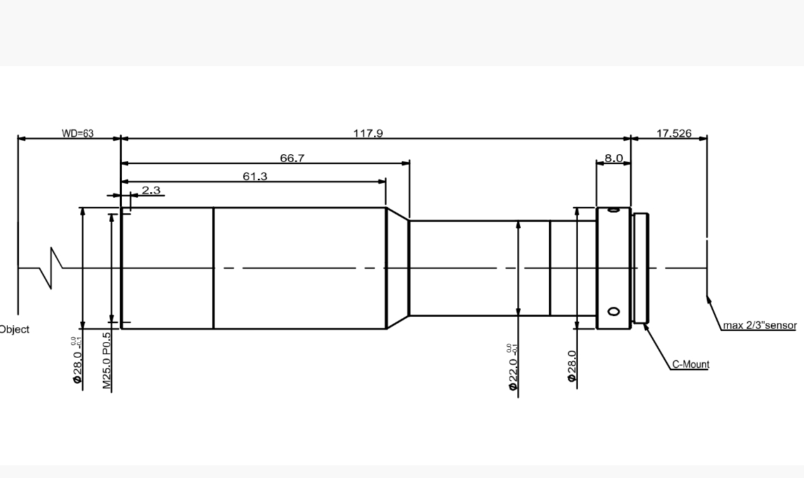 COOLENS 视清 WWH35-63ATV3 远心镜头 基本参数 支持CCD尺寸(Φmm) 11.0(2/3") 放大倍率β(x) 3.5 物方工作距WD(mm) 63±1 像方F/# 11.9 物方景深DOF(mm) 0.09 像方畸变(% max) 0.02 物方远心度(° max) 0.04 镜头总长(mm) 117.9 镜头接口 C 物方分辨率(μm) 2.7 数值孔径 NA 0.125 是否同轴光 否 可变光栏 无 视野范围 (mmxmm) 1/2" (6.4x4.8) 1.83x1.37 1/1.8" (7.13x5.37) 2.04x1.53 2/3"(8.45x7.1) 2.41x2.03 结构图 手机/微信:13682357734 电话:0755-84690029 QQ: 2844337877 邮箱:2844337877@qq.com...