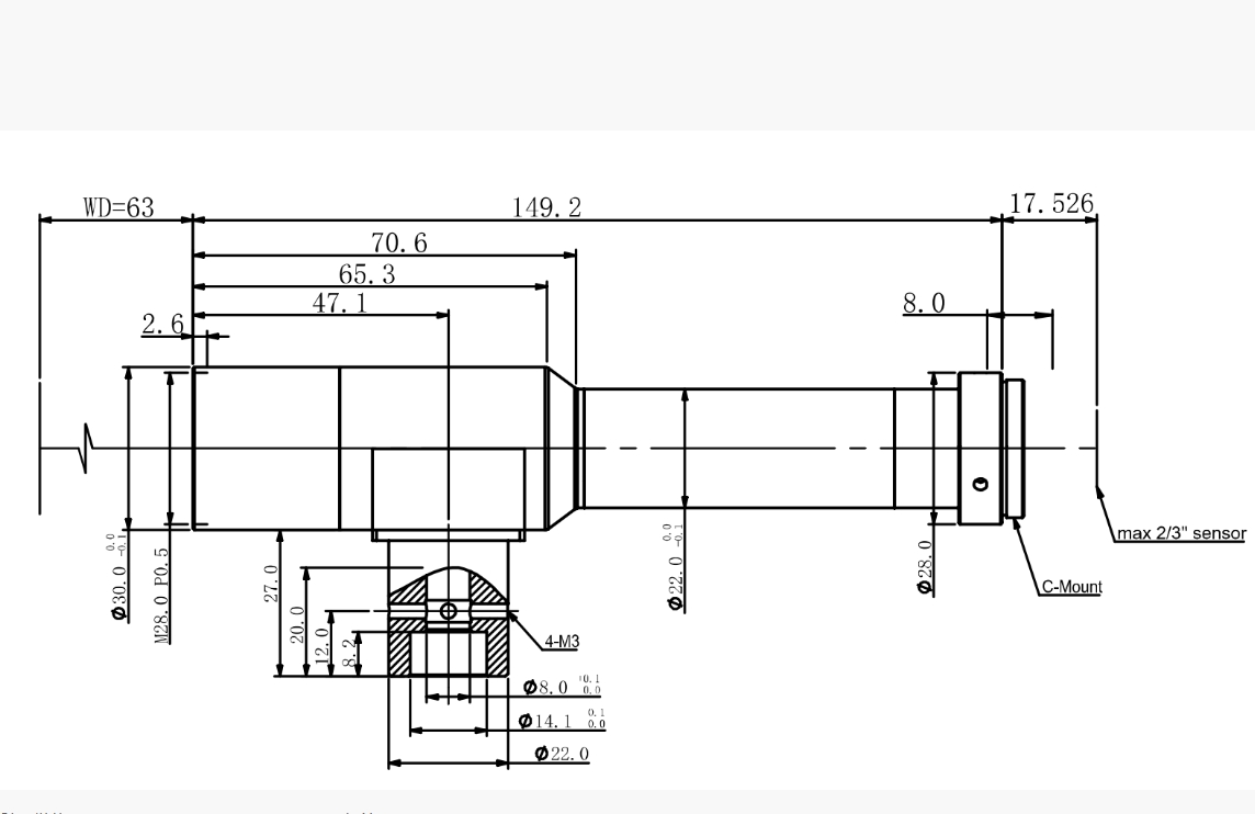 COOLENS 视清 WWH60-63CTV4-IR1170 远心镜头 基本参数 支持CCD尺寸(Φmm) 11.0(2/3") 放大倍率β(x) 6 物方工作距WD(mm) 63±1 像方F/# 20 物方景深DOF(mm) 0.04 像方畸变(% max) 0.08 物方远心度(° max) 0.06 镜头总长(mm) 149.2 镜头接口 C 物方分辨率(μm) 4.8 数值孔径 NA 0.15 是否同轴光 是 可变光栏 无 视野范围 (mmxmm) 1/2" (6.4x4.8) 1.07x0.8 1/1.8" (7.13x5.37) 1.19x0.9 2/3"(8.45x7.1) 1.41x1.18 结构图 手机/微信:13682357734 电话:0755-84690029 QQ: 2844337877 邮箱:2844337877@qq.com...