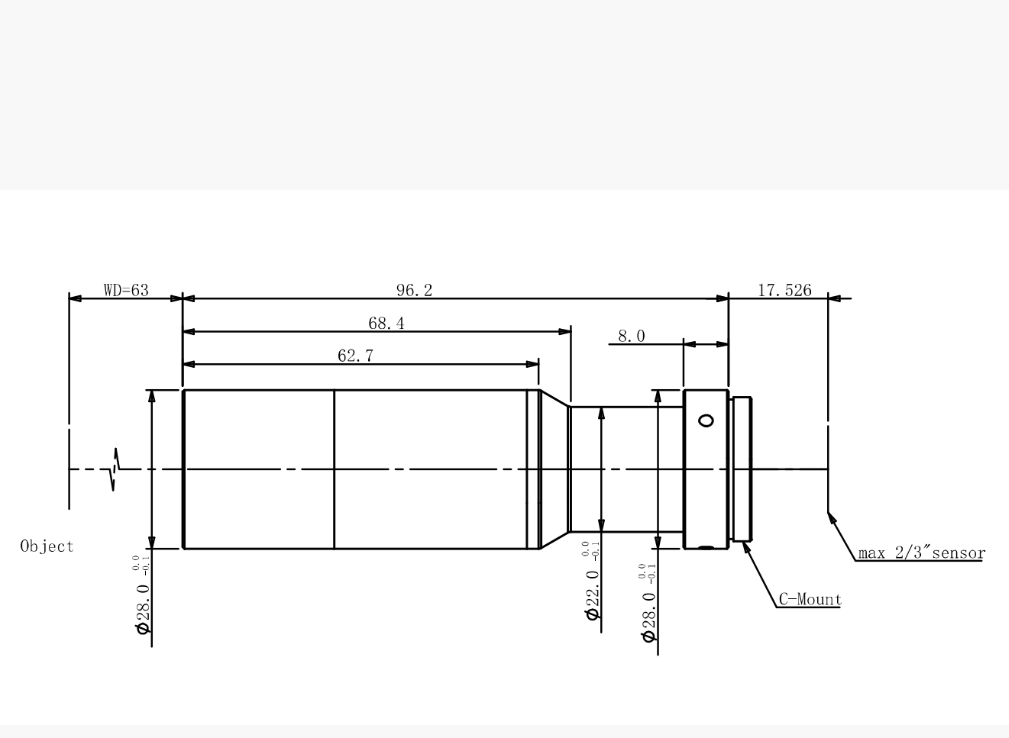 COOLENS 视清 WWH075-63ATV3 远心镜头 基本参数 支持CCD尺寸(Φmm) 11.0(2/3") 放大倍率β(x) 0.75 物方工作距WD(mm) 63±1 像方F/# 6 物方景深DOF(mm) 0.9 像方畸变(% max) 0.05 物方远心度(° max) 0.22 镜头总长(mm) 96.2 镜头接口 C 物方分辨率(μm) 5.4 数值孔径 NA 0.0625 是否同轴光 否 可变光栏 无 视野范围 (mmxmm) 1/2" (6.4x4.8) 8.5x6.4 1/1.8" (7.13x5.37) 9.5x7.2 2/3"(8.45x7.1) 11.3x9.5 手机/微信:13682357734 电话:0755-84690029 QQ: 2844337877 邮箱:2844337877@qq.com...