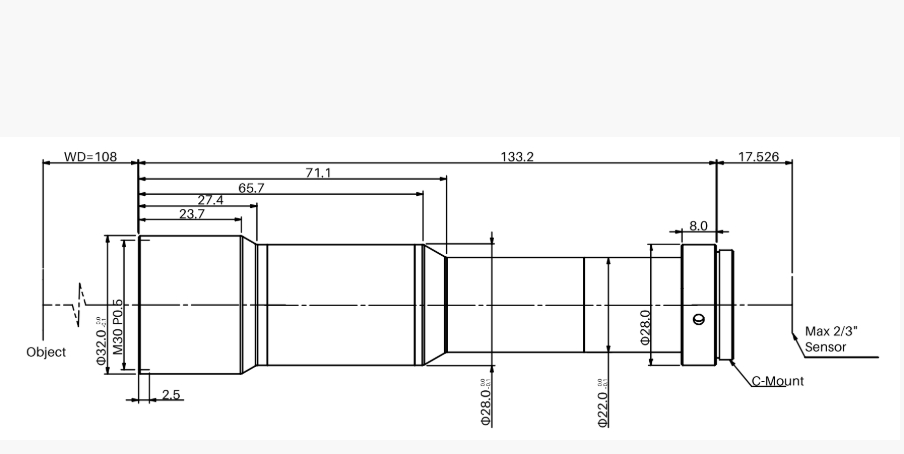 COOLENS 视清 WWH40-108ATV3 远心镜头 基本参数 支持CCD尺寸(Φmm) 11.0(2/3") 放大倍率β(x) 4 物方工作距WD(mm) 108 像方F/# 20.0 物方景深DOF(mm) 0.1 像方畸变(% max) 0.03 物方远心度(° max) 0.03 镜头总长(mm) 133.2 镜头接口 C 物方分辨率(μm) 3.4 数值孔径 NA 0.1 是否同轴光 否 可变光栏 无 视野范围 (mmxmm) 1/2" (6.4x4.8) 1.6x1.2 1/1.8" (7.13x5.37) 1.8x1.3 2/3" (8.8x6.6) 2.2x1.7 手机/微信:13682357734 电话:0755-84690029 QQ: 2844337877 邮箱:2844337877@qq.com...
