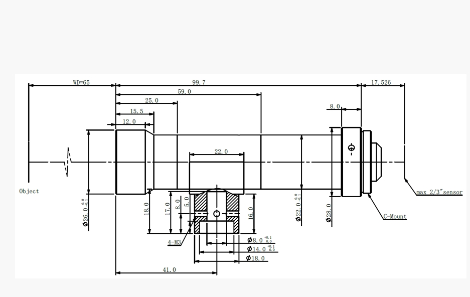 COOLENS 视清 WWH30-65CTV2 远心镜头 基本参数 支持CCD尺寸(Φmm) 11.0(2/3") 放大倍率β(x) 3 物方工作距WD(mm) 65±1 像方F/# 15.7 物方景深DOF(mm) 0.1 像方畸变(% max) 0.1 物方远心度(° max) 0.02 镜头总长(mm) 99.7 镜头接口 C 物方分辨率(μm) 3.5 数值孔径 NA 0.09501 是否同轴光 是 可变光栏 无 视野范围 (mmxmm) 1/2" (6.4x4.8) 2.1x1.6 1/1.8" (7.13x5.37) 2.4x1.8 2/3" (8.8x6.6) 2.9x2.2 手机/微信:13682357734 电话:0755-84690029 QQ: 2844337877 邮箱:2844337877@qq.com...