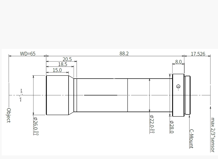 COOLENS 视清 WWH20-65CTV2 远心镜头 基本参数 支持CCD尺寸(Φmm) 11.0(2/3") 放大倍率β(x) 2 物方工作距WD(mm) 65±1 像方F/# 13.2 物方景深DOF(mm) 0.3 像方畸变(% max) <0.05 物方远心度(° max) <0.03 镜头总长(mm) 92.5 镜头接口 C 物方分辨率(μm) 4.4 数值孔径 NA 0.07554 是否同轴光 是 可变光栏 无 视野范围 (mmxmm) 1/2" (6.4x4.8) 3.2x2.4 1/1.8" (7.13x5.37) 3.6x2.7 2/3" (8.8x6.6) 4.4x3.3 手机/微信:13682357734 电话:0755-84690029 QQ: 2844337877 邮箱:2844337877@qq.com...