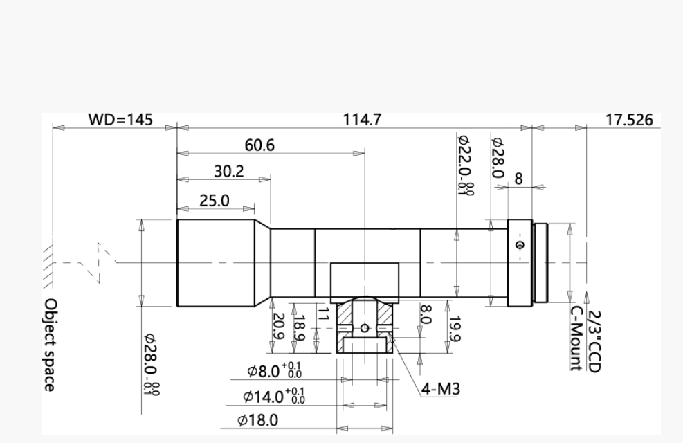 COOLENS 视清 WWH07-145CT 远心镜头 基本参数 支持CCD尺寸(Φmm) 11.0(2/3") 放大倍率β(x) 0.7 物方工作距WD(mm) 145±2 像方F/# 16.8 物方景深DOF(mm) 2.7 像方畸变(% max) <0.1 物方远心度(° max) <0.1 镜头总长(mm) 110.4 镜头接口 C-Mount 物方分辨率(μm) 16.2 数值孔径 NA 0.0207 是否同轴光 是 可变光栏 无 视野范围 (mmxmm) 1/2" (6.4x4.8) 9.1x6.9 1/1.8" (7.13x5.37) 10.2x7.7 2/3" (8.8x6.6) 12.6x9.4 手机/微信:13682357734 电话:0755-84690029 QQ: 2844337877 邮箱:2844337877@qq.com...