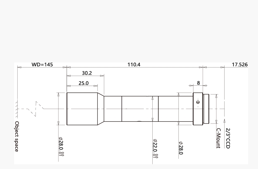 COOLENS 视清 WWH07-145AT 远心镜头 基本参数 支持CCD尺寸(Φmm) 11.0(2/3") 放大倍率β(x) 0.7 物方工作距WD(mm) 145±2 像方F/# 16.8 物方景深DOF(mm) 2.7 像方畸变(% max) <0.1 物方远心度(° max) <0.1 镜头总长(mm) 110.4 镜头接口 C-Mount 物方分辨率(μm) 16.2 数值孔径 NA 0.0207 是否同轴光 否 可变光栏 无 视野范围 (mmxmm) 1/2" (6.4x4.8) 9.1x6.9 1/1.8" (7.13x5.37) 10.2x7.7 2/3" (8.8x6.6) 12.6x9.4 手机/微信:13682357734 电话:0755-84690029 QQ: 2844337877 邮箱:2844337877@qq.com...