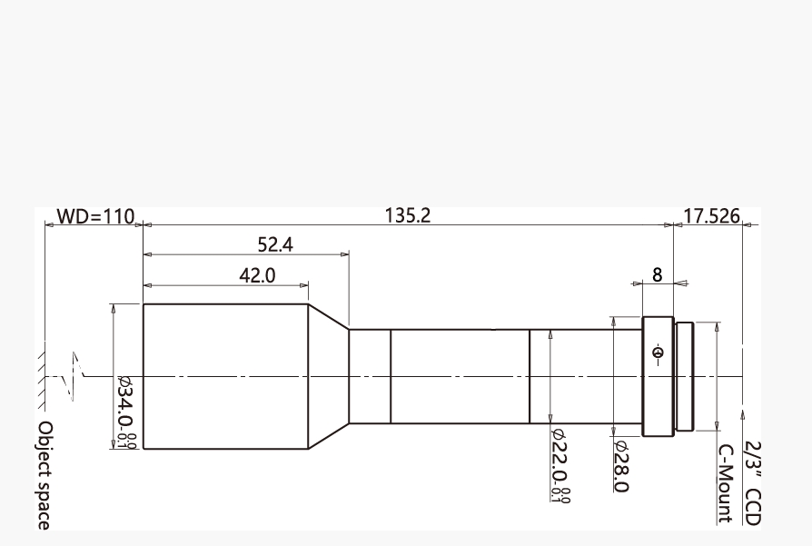 COOLENS 视清 WWH05-110AT 远心镜头 基本参数 支持CCD尺寸(Φmm) 11.0(2/3") 放大倍率β(x) 0.5 物方工作距WD(mm) 110±2 像方F/# 9.6 物方景深DOF(mm) 3.1 像方畸变(% max) <0.1 物方远心度(° max) <0.1 镜头总长(mm) 135.2 镜头接口 C-Mount 物方分辨率(μm) 12.9 数值孔径 NA 0.026 是否同轴光 否 可变光栏 无 视野范围 (mmxmm) 1/2" (6.4x4.8) 12.8x9.6 1/1.8" (7.13x5.37) 14.3x10.7 2/3" (8.8x6.6) 17.6x13.2 手机/微信:13682357734 电话:0755-84690029 QQ: 2844337877 邮箱:2844337877@qq.com...