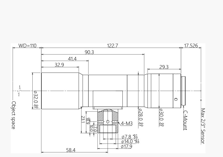COOLENS 视清 WWH08-110CTV2 远心镜头 基本参数 支持CCD尺寸(Φmm) 11.0(2/3") 放大倍率β(x) 0.8 物方工作距WD(mm) 110±2 像方F/# 7.9 物方景深DOF(mm) 1.0 像方畸变(% max) <0.1 物方远心度(° max) <0.1 镜头总长(mm) 122.7 镜头接口 C-Mount 物方分辨率(μm) 6.7 数值孔径 NA 0.05028 是否同轴光 是 可变光栏 无 视野范围 (mmxmm) 1/2" (6.4x4.8) 8.0x6.0 1/1.8" (7.13x5.37) 8.9x6.7 2/3" (8.8x6.6) 11.0x8.3 手机/微信:13682357734 电话:0755-84690029 QQ: 2844337877 邮箱:2844337877@qq.com...
