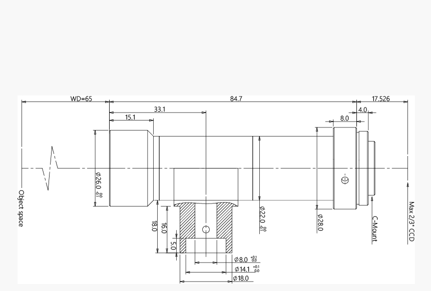 COOLENS 视清 WWH30-65CT 远心镜头 基本参数 支持CCD尺寸(Φmm) 11.0(2/3") 放大倍率β(x) 3 物方工作距WD(mm) 65±1 像方F/# 20.2 物方景深DOF(mm) 0.2 像方畸变(% max) <0.1 物方远心度(° max) <0.1 镜头总长(mm) 84.7 镜头接口 C-Mount 物方分辨率(μm) 4.8 数值孔径 NA 0.0703 是否同轴光 是 可变光栏 无 视野范围 (mmxmm) 1/2" (6.4x4.8) 2.1x1.6 1/1.8" (7.13x5.37) 2.4x1.8 2/3" (8.8x6.6) 2.9x2.2 手机/微信:13682357734 电话:0755-84690029 QQ: 2844337877 邮箱:2844337877@qq.com...