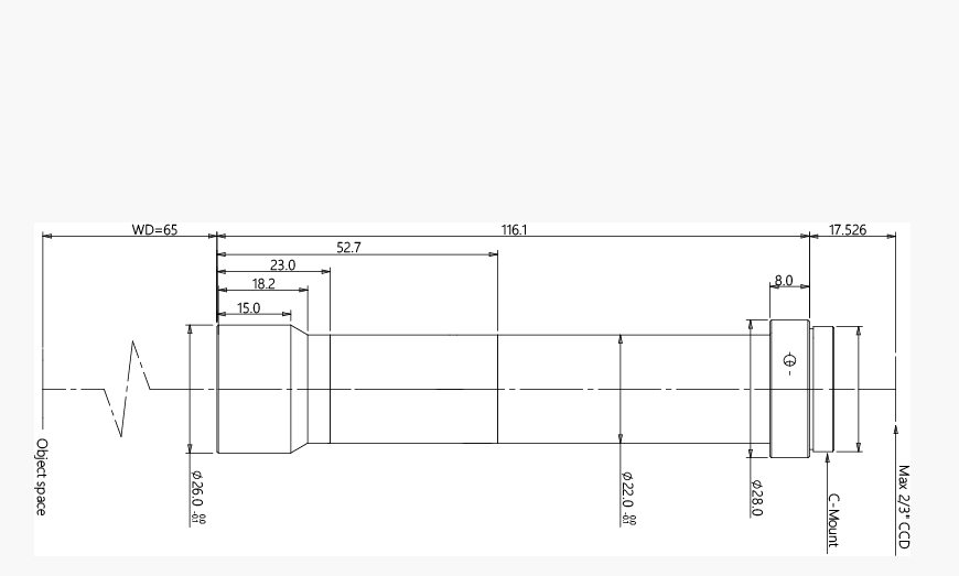 COOLENS 视清 WWH60-65AT 远心镜头 产品参数 DATA 基本参数 支持CCD尺寸(Φmm) 11.0(2/3") 放大倍率β(x) 6 物方工作距WD(mm) 65±1 像方F/# 24.6 物方景深DOF(mm) 0.1 像方畸变(% max) <0.1 物方远心度(° max) <0.1 镜头总长(mm) 116.1 镜头接口 C-Mount 物方分辨率(μm) 2.9 数值孔径 NA 0.116 是否同轴光 否 可变光栏 无 视野范围 (mmxmm) 1/2" (6.4x4.8) 1.1x0.8 1/1.8" (7.13x5.37) 1.2x0.9 2/3" (8.8x6.6) 1.5x1.1 手机/微信:13682357734 电话:0755-84690029 QQ: 2844337877 邮箱:2844337877@qq.com...